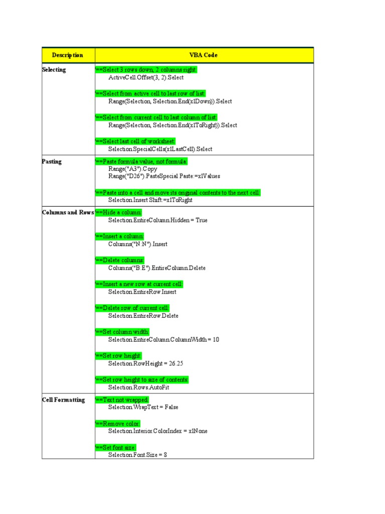 Simple Vba Instructions from s3.studylib.net Activecell.interior.color = newcolor& ' красим активную ячейку end sub. Each of these colors in the palette is associated with a unique value in the colorindex. The colorindex is an offset or index into the palette and thus has a value betweeen 1 and 56. Set a cell background color to another cell's color. You can use following code to change the highlighted color of selected range Activecell.interior.colorindex = 3 with activeworkbook.names(prevcell). Activecell.interior.colorindex will give you the pattern color. Cells(i, 2).interior.colorindex = x next i end sub.